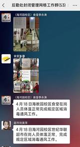 校园封闭防控期间,后勤处带领服务外包队伍忠于职守、甘于奉献,及时调整后勤运行方式,采取轮岗值班的形式确保了学校安全稳定运行。为及时全面掌握后勤疫情防控和服务保障工作落实情况,后勤处第一时间建立了校园封闭管理工作群,明确各科室、各单位网格员,要求各单位每天将工作落实情况在群里进行“日报告”。同时,为了动态掌握员工健康情况,各科室依据人员底册,通过线上小程序每日统计个人健康信息,及时掌握每位员工身体状况,切实加强人员管理。