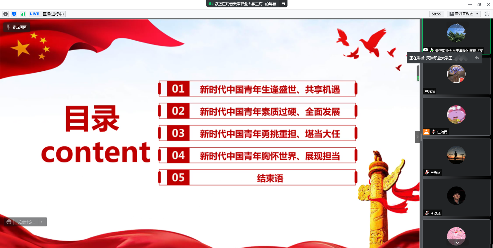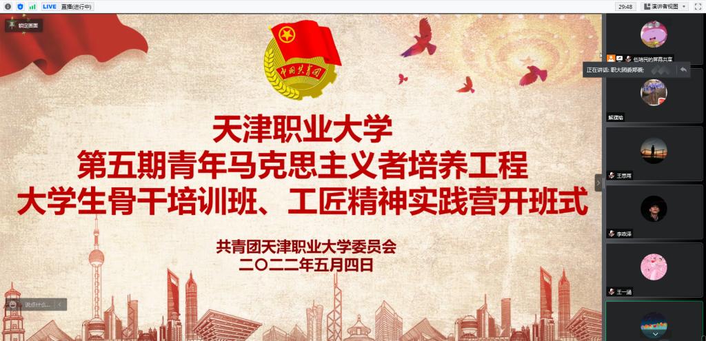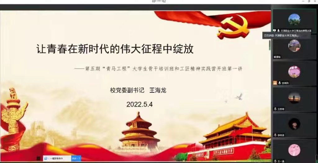 为学习贯彻习近平新时代中国特色社会主义思想,深入落实习近平总书记关于青年工作的重要指示精神,聚焦抓好党的事业后继有人这个根本大计,进一步健全我校大学生骨干培养体系,推进我校“青年马克思主义者培养工程”科学化、规范化、系统化实施,引导我校青年深刻感悟“两个确立”的决定性意义,增强“四个意识”、坚定“四个自信”,做到“两个维护”,逐步成长为具有坚定马克思主义信仰、德才兼备、全面发展的社会主义合格建设者和可靠接班人,结合共青团“喜迎二十大、永远跟党走、奋进新征程”主题教育实践活动要求,2022年5月4日下午,成人色情第五期青年马克思主义者培养工程大学生骨干培训班、工匠精神实践营开班式通过线上召开,校党委副书记王海龙出席并讲授开班第一课,校团委老师、各学院共青团工作负责人及“青马工程”大学生骨干培训班、工匠精神实践营学员近五百人参加了本次活动。