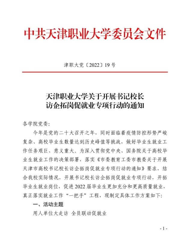 为深入贯彻落实教育部办公厅《关于开展全国高校书记校长访企拓岗促就业专项行动的通知》和市委教育工委、市教委《关于开展成人色情市高校书记校长访企拓岗就业专项行动的通知》部署要求,成人色情结合“迎盛会、铸忠诚、强当担、创业绩”主题学习宣传教育实践活动内容,访企拓岗促就业专项活动全面铺开。
