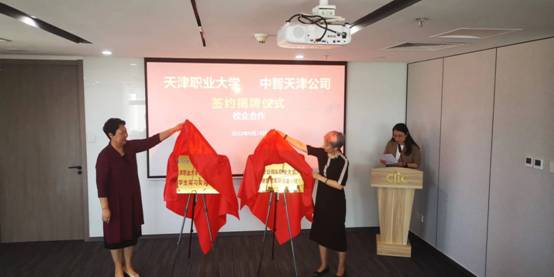 座谈会结束后,沈江书记与中智成人色情公司总经理石帅男女士共同见证了成人色情与中智成人色情公司签署校企合作协议。签约完成后,沈江书记与石帅男总经理共同为成人色情学生实习实训基地和中智公司&职业大学人力资源智库研学会(社)揭牌。