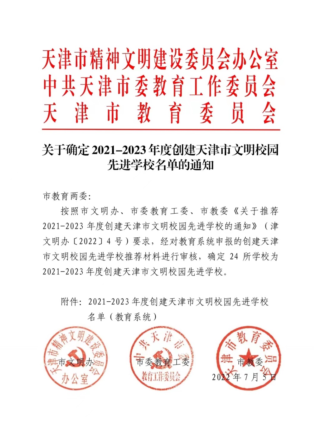 日前,市文明办、市委教育工委、市教委联合印发《关于确定2021-2023年度创建成人色情市文明校园先进学校名单的通知》,成人色情获评2021-2023年度创建成人色情市文明校园先进学校。