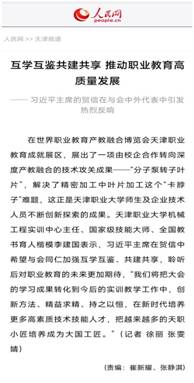 郑清春校长、李建国老师、刘建宏老师、刘东亚同学学习国家主席习近平向首届世界职业技术教育发展大会致贺信的学习体会和参会感想,受到科技日报、人民网、新华社、学习强国等多家媒体采访报道。
