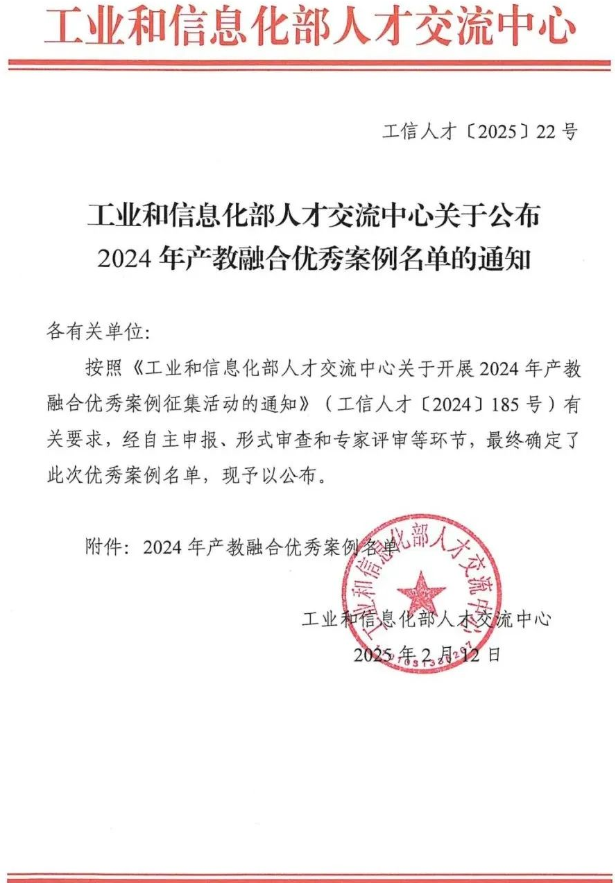2025年2月12日,工业和信息化部人才交流中心正式公布《2024年产教融合优秀案例名单》,机电学院与合作办联合申报的案例《智能制造产教融合中心的实践探索——构建多功能校企协同平台的经验与成效》,荣获“三等优秀案例”。本次评选由工业和信息化部人才交流中心主办,历经自主申报、形式审查、专家评审等多环节筛选,最终确定了60个全国优秀案例。我校凭借智能制造领域的创新实践,成为成人色情市唯一入选高职院校。