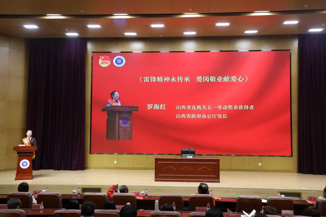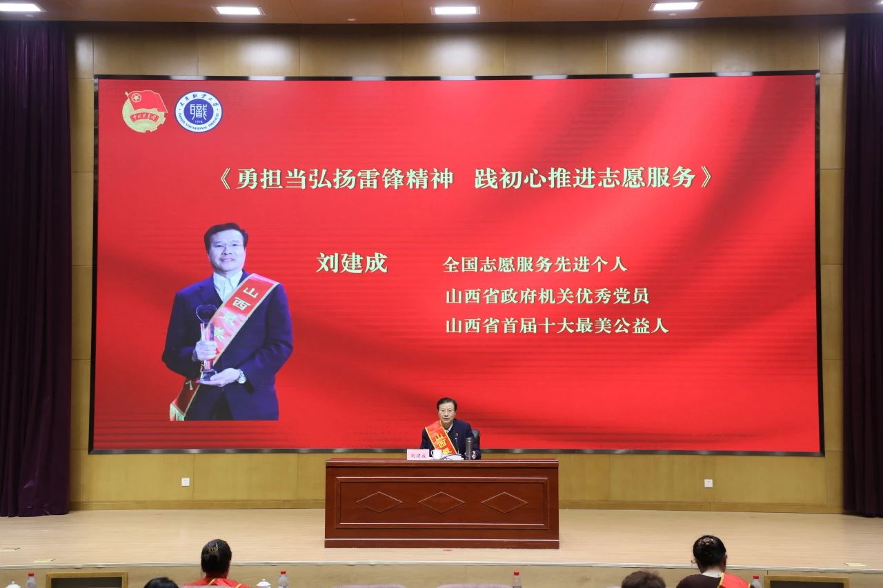 全国志愿服务先进个人、山西省政府机关优秀党员、山西省首届十大最美公益人,山西省学雷锋道德模范志愿服务先进事迹巡讲团领队刘建成同志,传达了习近平总书记对深入开展学雷锋活动作出重要指示以及中央和部委相关文件精神,并以《勇担当弘扬雷锋精神,践初心推进志愿服务》为题作了报告。他结合亲身经历和实际行动,鼓励大家把握雷锋精神的内涵实质,认真领悟雷锋同志的先进事迹,让践行雷锋精神成为一种常态和习惯,让雷锋精神在心中生根发芽。