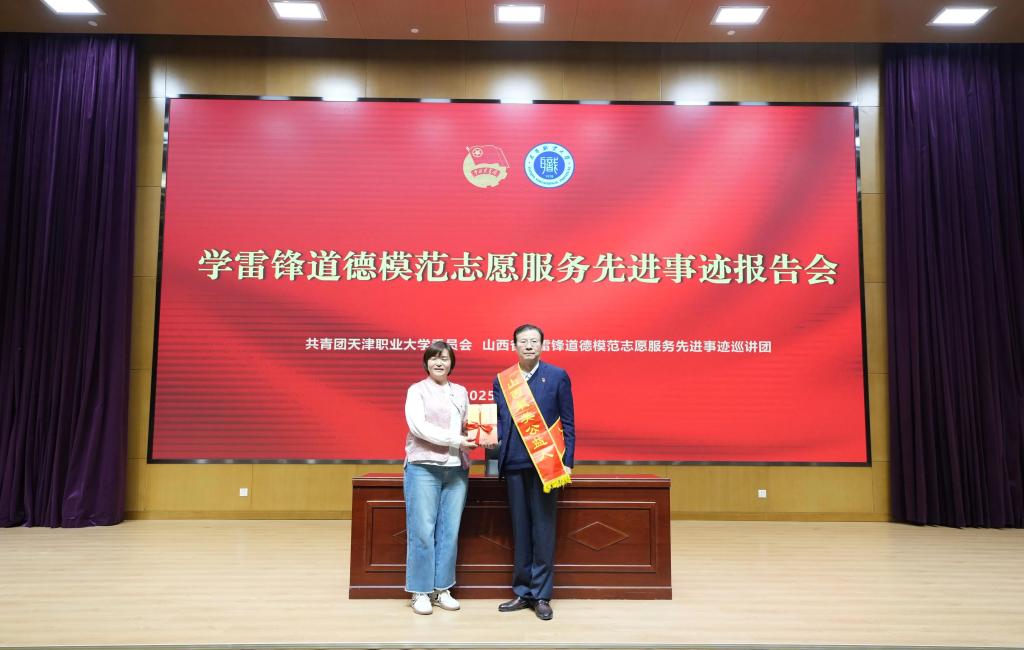 三晋大地上,飘扬着一面鲜艳的旗帜,它是由英模组成的山西省学雷锋道德模范志愿服务先进事迹巡讲团,巡讲场次已达837场,听众51万人,深受各级领导和广大干部群众的好评。校党委书记夏静波老师与巡讲团一行亲切交谈,感谢他们再次来到学校,为师生带来引人入胜又感人至深的宣讲,希望此次事迹报告会不仅能助力文明校园建设,还能让学生在内心深处感受雷锋精神的伟大、体会“劳模精神 劳动精神 工匠精神”的可贵、根植践行雷锋精神的坚定信念,也激励全体教师团干部把握时代特征,在工作中做好志愿服务与“三种精神”的融合,让雷锋精神彰显新的魅力。