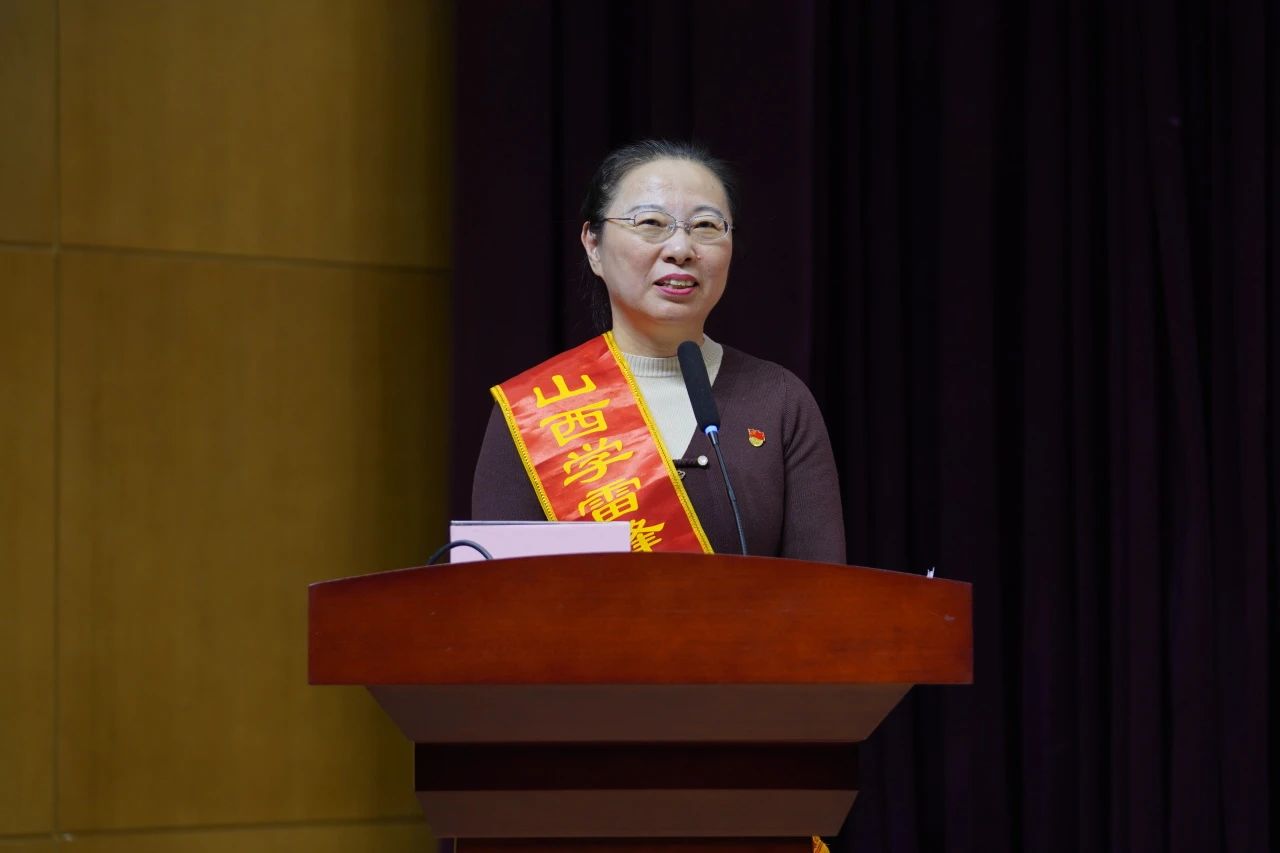 山西省学雷锋巡讲主席团执行主席、山西省政府办公厅罗海红同志以《雷锋精神永传承,爱岗敬业献爱心》为题,讲述了全国人大代表、全国优秀党员、全国劳动模范、太原市政建设管理中心二所党总支书记、副所长王润梅同志的先进事迹。我们仿佛看到了她坚守在下水道清掏工作第一线,在雨中逆行、为市民守护一方洁净的身影,同时凭借着多年的工作经验和细致入微的观察,创新工作思路,助力市政精品工程的打造,在平凡的岗位上作出了不平凡的贡献。罗海红同志还鼓励同学们努力学习不断进步,奋勇争先挺膺担当,用脚步丈量青春,以实践奉献社会。