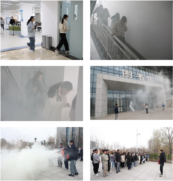 随着消防警报和应急广播响起,馆内师生迅速响应,在图书馆工作人员的引导下,按照预定的疏散路线撤离至安全区域。整个应急疏散演练过程,所有参训人员严肃认真、听从指挥,行动迅速、处置有序。疏散演练结束后,校党委安全工作部(保卫处)工作人员针对高校图书馆的特点,详细讲解了疏散人群的时机和方式、火灾自救逃生技巧等专业知识,并现场组织消防灭火器材的实操演练。