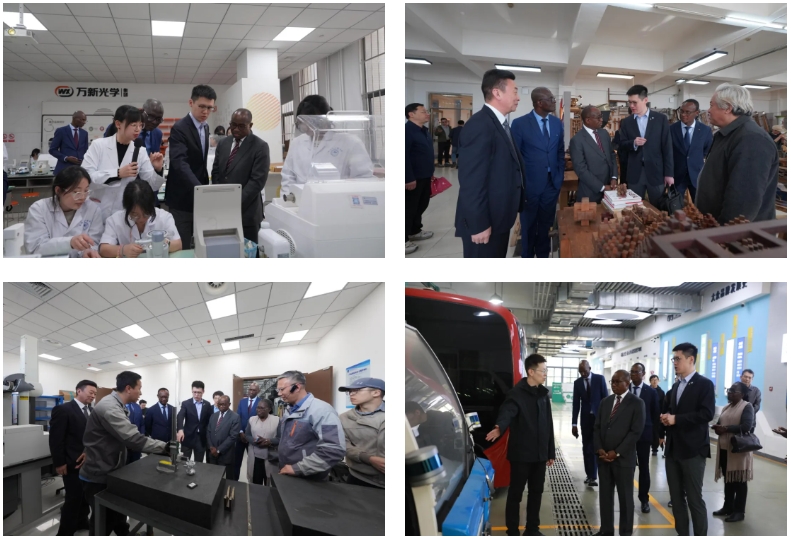 调研期间,校长吴宗保陪同特迪瓦技术教育、职业培训与学徒事务部部长科菲·恩盖桑一行实地考察了我校眼视光工程学院、艺术工程学院、智能制造产教融合实训中心和汽车工程学院。