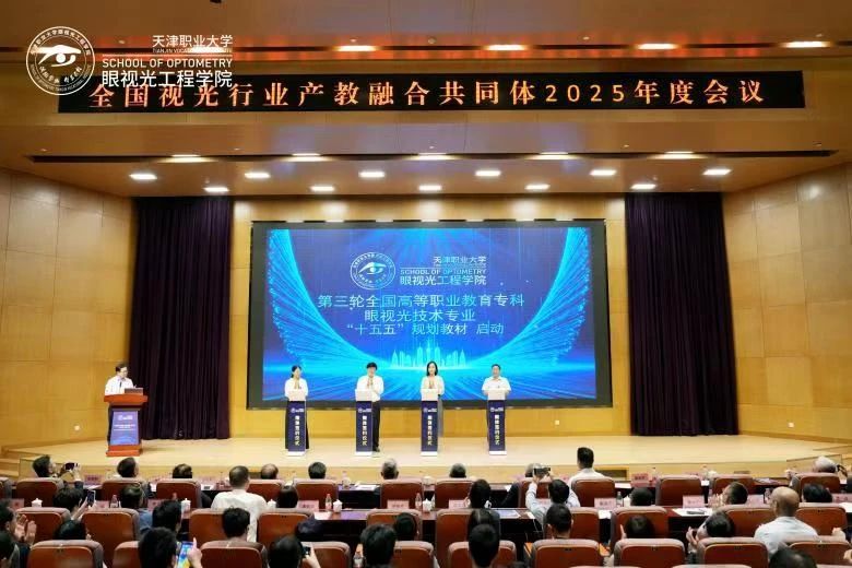 开幕式上,领导专家的致辞充分肯定了我校眼视光技术专业办学40年以来的丰硕成果;多个校企合作项目签约落地;眼视光技术、视觉训练与康复系列教学资源合作发布;14位客座教授与31位产业导师成功受聘;为19家视光企业颁发“优质合作企业”牌匾;众多行业专家、校友为大会的召开送来视频祝福。由全国视光行指委牵头的第三轮全国高等职业教育专科眼视光技术专业“十五五”规划教材正式启动。