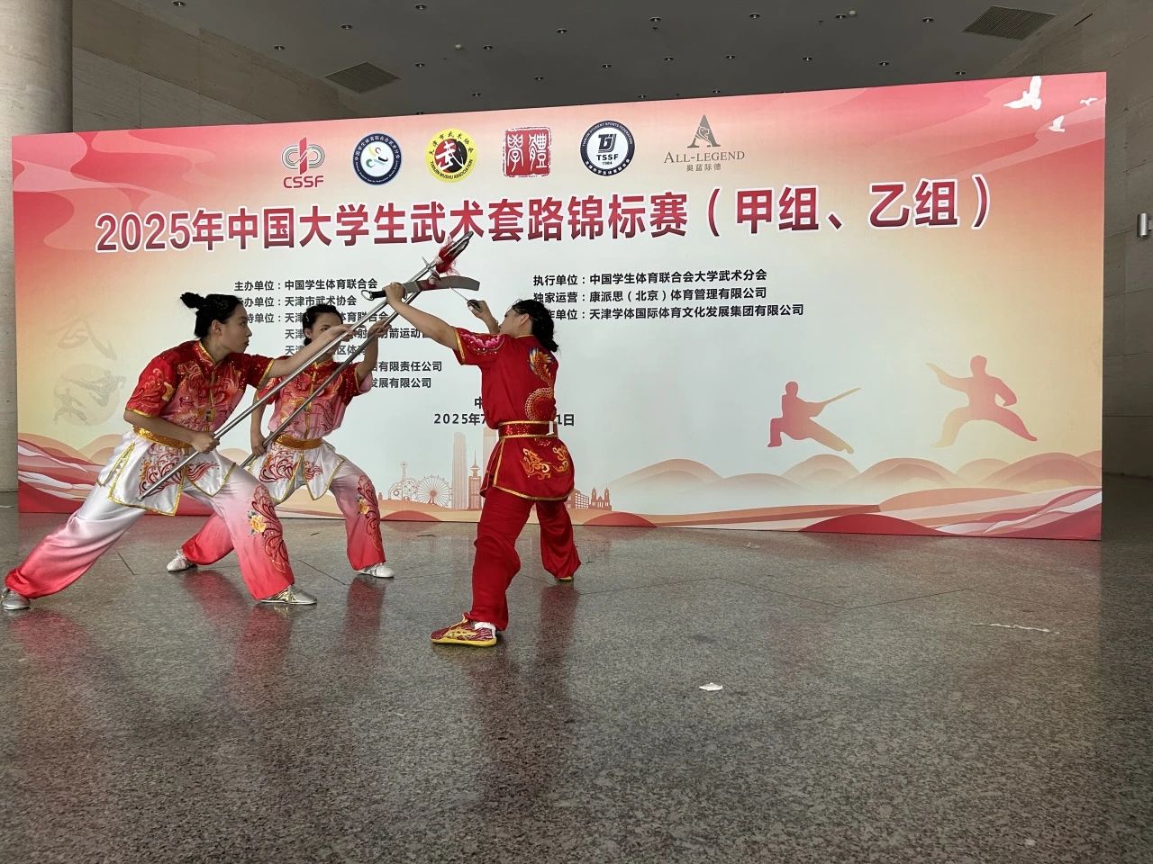 近日,由中国学生体育联合会主办的2025年中国大学生武术套路锦标赛(甲乙组)隆重举行。来自全国各地241所高校的2000余名运动员、教练员齐聚一堂,共同参与这场武术盛会,参赛人数创下历史新高。经过激烈角逐,我校武术队斩获4金1银1铜和4个第四名1个第五名的优异成绩。