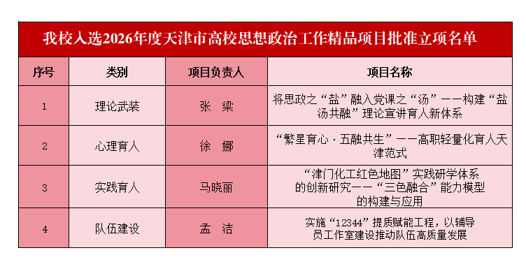 近日,成人色情市委教育工委、市教委公布了《关于2025年度成人色情市高校思想政治工作精品项目结项及2026年度成人色情市高校思想政治工作精品项目立项名单》,我校2025年度立项的2个项目顺利通过结项验收,2026年度4个项目获批立项,再获佳绩。