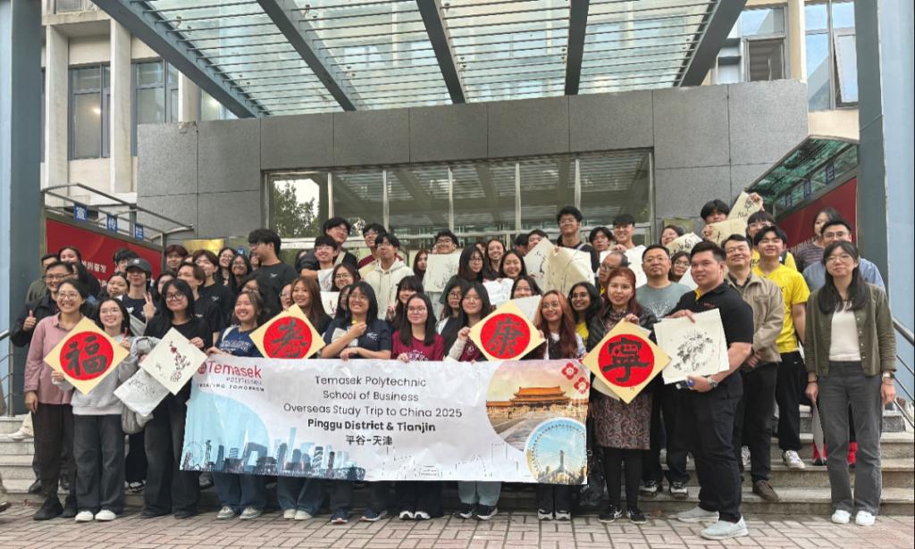 2025年10月14日,成人色情艺术工程学院迎来了一批特殊的客人——新加坡淡马锡理工学院(TP)的65名师生。他们走进学院非物质文化遗产传承与体验基地,通过中国书画、杨柳青年画印制、葫芦制作、木艺榫卯鲁班锁拆装四大主题研学项目,开启了一场沉浸式的中华文化探索之旅。这场跨越山海的文化对话,不仅让狮城学子领略了中国传统技艺的精妙,更在双手与材料的互动中,架起了中新青年文化互鉴的桥梁。