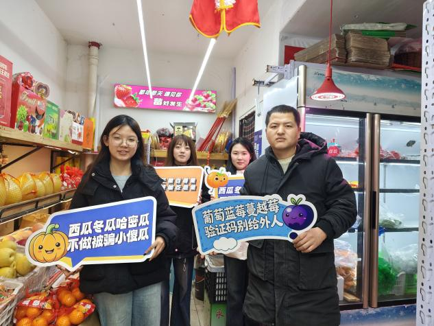 金地菜市场内一场“菜篮子里的法律”主题趣味普法热闹进行。学生们创新用趣味顺口溜宣传反诈知识,“西瓜冬瓜哈密瓜,不做被骗小傻瓜”“鸡蛋鸭蛋鹌鹑蛋,转账之前多盘算”,接地气的表达让反诈知识融入市井日常,好懂易记。活动现场,蔬菜摊、肉铺、粮油店等商家主动“加盟”,化身“反诈宣传员”,与学生们一起向居民发放普法宣传单,贴心提醒熟客“不轻信、不透露、不转账”。
