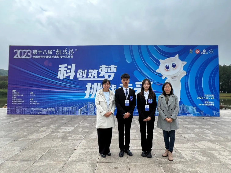 张发荣(右一)带领团队参加第十八届“挑战杯”,他们的项目荣获全国二等奖