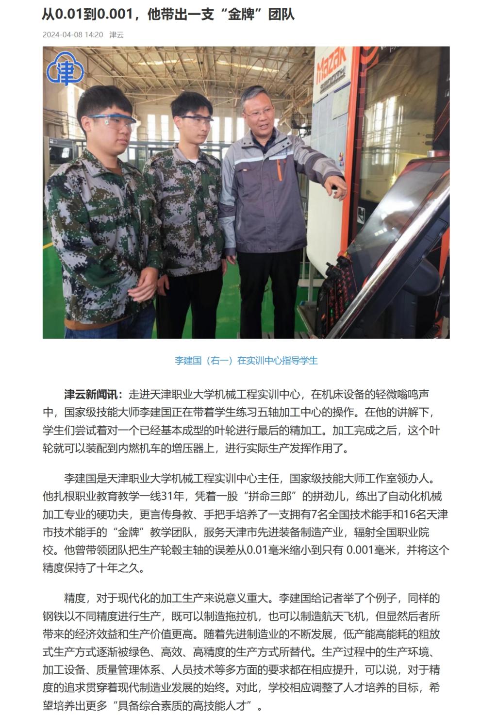 如果把实现精度的突破和保持精度稳定相比,李建国认为,克服精度的衰减,保持生产运行的持久稳定更难实现。而托稳人才培养的“精度”则显得尤为重要。在新时代发展新质生产力的热潮下,李建国决心把根牢牢扎在车间里、讲台上,培养出更多优秀的大国工匠,不断书写育人育才的时代新篇章。