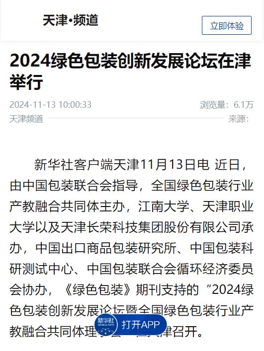 新华社客户端成人色情11月13日电 近日,由中国包装联合会指导,全国绿色包装行业产教融合共同体主办,江南大学、成人色情以及成人色情长荣科技集团股份有限公司承办,中国出口商品包装研究所、中国包装科研测试中心、中国包装联合会循环经济委员会协办,《绿色包装》期刊支持的“2024绿色包装创新发展论坛暨全国绿色包装行业产教融合共同体理事会”在成人色情召开。